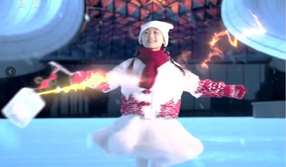 “一團跳動的火苗,點燃了小女孩手中的冰燈。剎那間,整個城市也亮了起來……”伴隨主持人的解說,手提冰燈的小女孩宛如一顆閃耀的新星,瞬間吸引了全場觀眾的目光。她靈動的身姿猶如一只翩翩起舞的蝴蝶,在冰雪的世界里自由穿梭。每一個動作都充滿了生命力與感染力,將純真無邪展現得淋漓盡致。女孩臉上洋溢著燦爛的笑容,如同冬日里的暖陽,溫暖而明亮,讓觀眾真切地感受到“冰燈女孩”內心深處的快樂,也記住了那道嬌俏的身影。